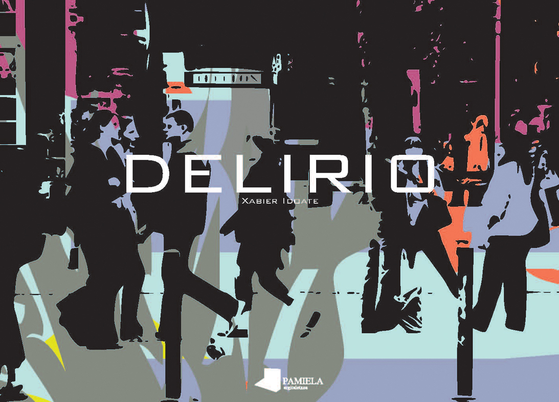 Sus imágenes -fotografías urbanas de calles, edificios, estaciones o muelles- han sido manipuladas por una base del programa Freehand, complementada por herramientas de Corel Draw, Total Vectorize, Photoshop, Acrobat, etc. en una potente amalgama de gráfica vectorial. Procesadas mediante automatismos programados, las instantáneas originales se convierten en un palimpsesto de superposiciones y errores deliberados de las que se obtienen estampas cuyos sintéticos perfiles figurativos son alterados por manchas de un irónico colorismo pop. Sobre el registro infográfico se superponen breves segmentos escritos de pseudohistorias protagonizadas por personajes anónimos confusamente conectadas en una suerte de monólogo interior colectivo de pensamientos o conversaciones, como si hubiera sido captado aleatoriamente por un omnisciente micrófono oculto. Xabier Idoate, tras la experimentación puramente plástica de la infografía de R.A.M. (2004) o Graphoskop (2005-6), inaugura una nueva etapa y da un salto cualitativo al abarcar un nivel narrativo, que alcanzará en su siguiente producción ZZZZ (2011), su máximo estadio de complejidad. Delirio, improbable novela (info)gráfica, se proyecta como una obra total contemporánea, que tiene a la ciudad europea –Hamburgo o Bilbao- como escenario de una nueva épica cotidiana de carácter crítico. El nuevo flanêur urbano atravesando un ‘delirio’ de spleen y corrupción, propios de la novela negra y el neonoir.