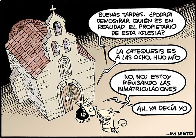 Tiene maldita gracia que la Iglesia siga condenando el capitalismo, pero no las inmatriculaciones. Las prácticas capitalistas no son de su agrado, pero acumular edificios en formato de iglesias –que no fueron, ni son de su propiedad-, es legal, ético y evangélico. Hacer de estos edificios públicos propiedades privadas está bien visto si lo hace la Iglesia, pero no el común de los mortales.