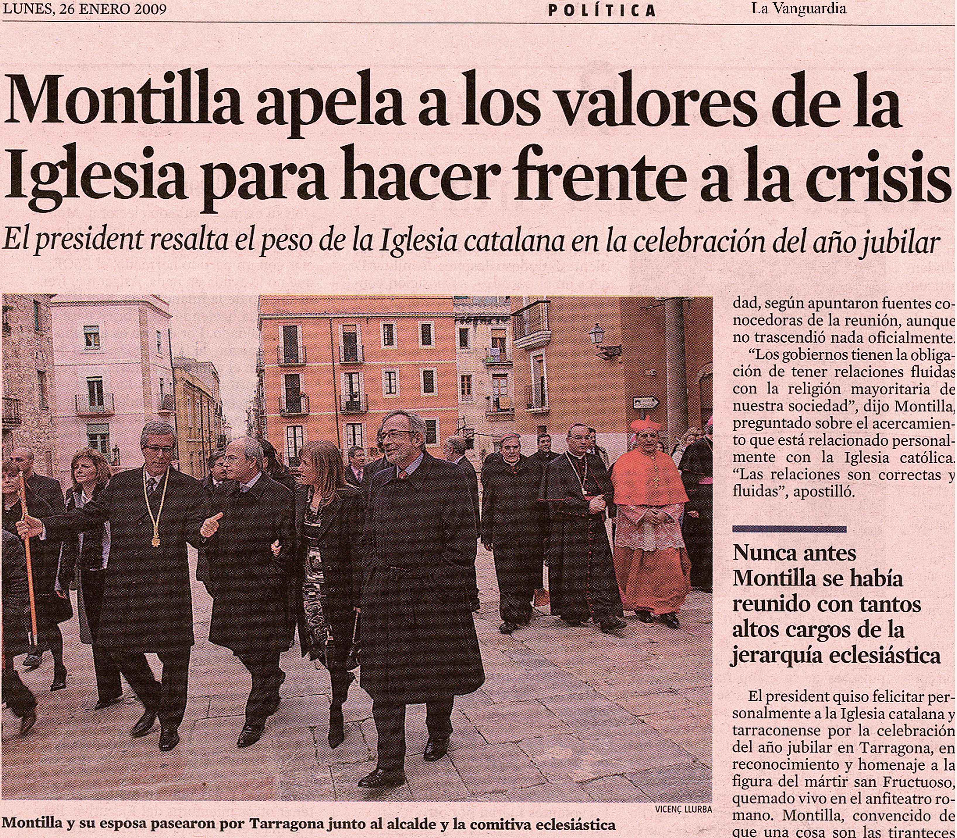 Sus ministros no han dejado de asistir a múltiples ceremonias civiles acompañando `por la jerarquía eclesiástica más granada, lo mismo que a actos estrictamente religiosos confesionales en representación de España. La vicepresidenta del gobierno de Zapatero, María Teresa Fernández de la Vega y el incombustible meapilas Bono, también Moratinos, no se perdieron ceremonia religiosa al más alto nivel representando siempre a España. Hasta tuvieron la desfachatez de asistir a la beatificación de los sacerdotes que murieron en la guerra civil, asesinados por los rojos, claro, y elevados a la categoría de mártires.